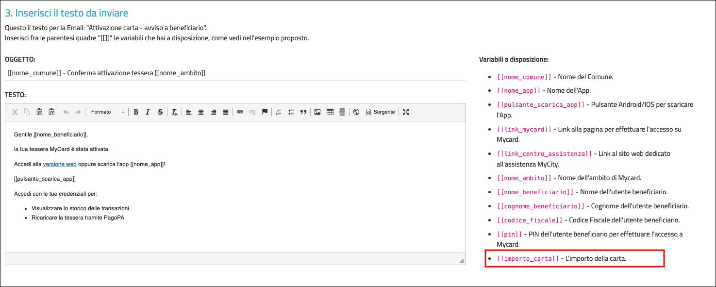 Aggiunto importo delle tessere tra le variabili che è possibile inserire nelle email inviate tramite la sezione "Comunicazioni".