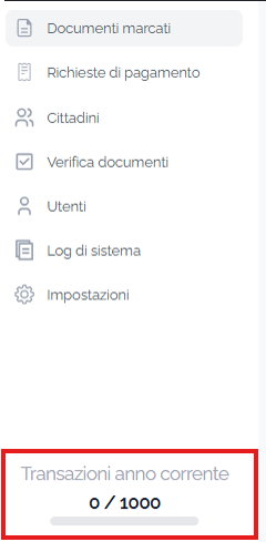 Sul nuovo servizio e-bollo è stato implementato il campo che indica il numero di transazioni effettuate rispetto a quelle disponibili, visibile anche nell’area di amministrazione del Comune nella sezione “Impostazioni”