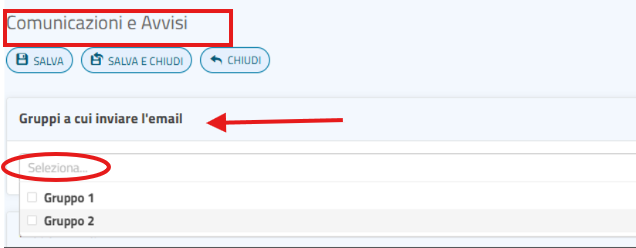 - Predisporre e inviare la comunicazione selezionando il gruppo di riferimento.