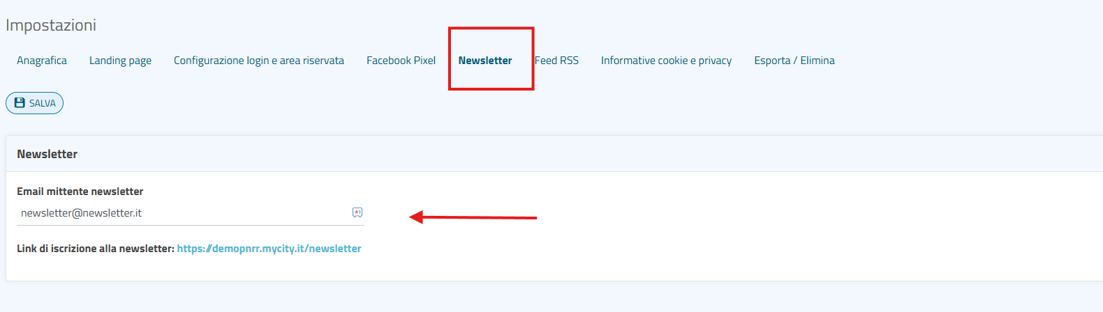 Abbiamo risolto un bug che si verificava durante l’inserimento di un indirizzo e-mail nelle impostazioni Newsletter per definire il mittente delle comunicazioni inviate tramite il modulo Comunicazione Avvisi. In precedenza, ogni tentativo di salvataggio generava un errore 500, ora l’indirizzo può essere inserito correttamente senza problemi.
