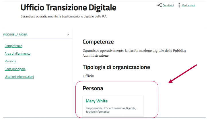 All’interno delle pagine di tipo “Ufficio” è possibile inserire rapidamente una scheda “Persona”, utilizzando il pulsante azzurro “+” . Abbiamo risolto un bug che non permetteva di tenere la persona appena creata associata all’ufficio.