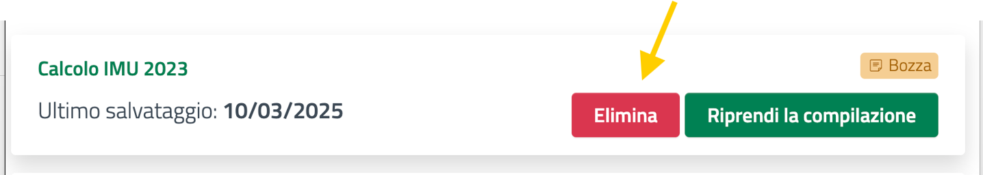 È stato aggiunto il pulsante 'Elimina' anche per le bozze relative al calcolo IMU, in modo da rendere l'area personale più coerente e facile da usare