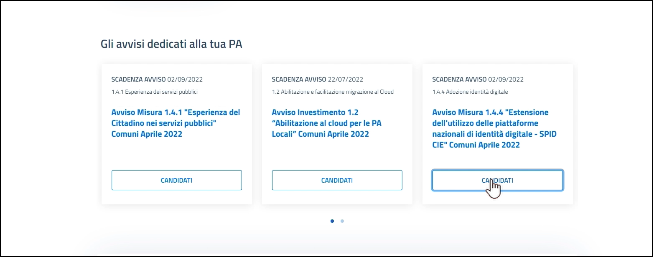 Una volta effettuato l’accesso nell’Area riservata della tua PA, potrai procedere all’invio delle candidature.