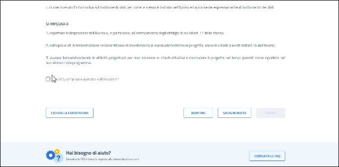 Spunta la casella per confermare le dichiarazioni e clicca su “Avanti”