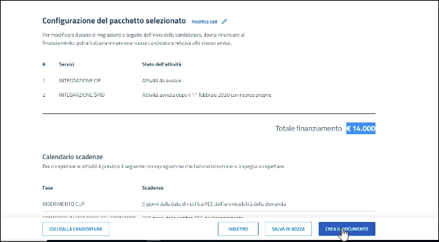 Ora manca solo l'ultimo passaggio per poter inviare la candidatura: scarica il documento PDF, apponi la firma digitale del rappresentante legale (il Sindaco) e allega il documento firmato in formato p7m.