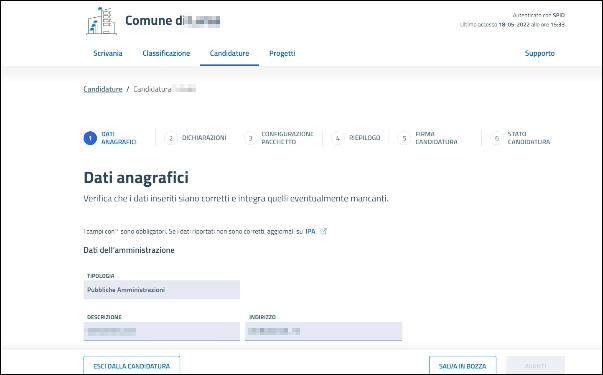 I dati anagrafici vengono importati direttamente da IPA; verifica se sono corretti e completa quelli mancanti.