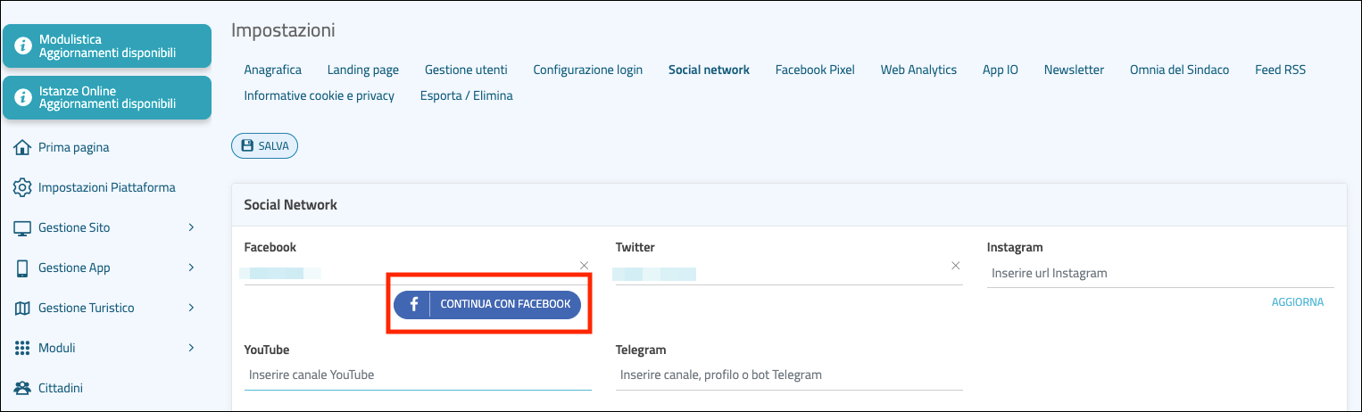 L'Ente ha una pagina Facebook e vuoi utilizzarla per dare maggiore visibilità alle informazioni inserite nel Sito e nell'App? Di seguito troverai i passaggi da seguire.