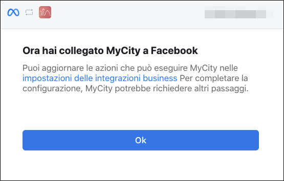 7. Hai collegato MyCity a Facebook, non ti resta che cliccare su ok per terminare la configurazione.