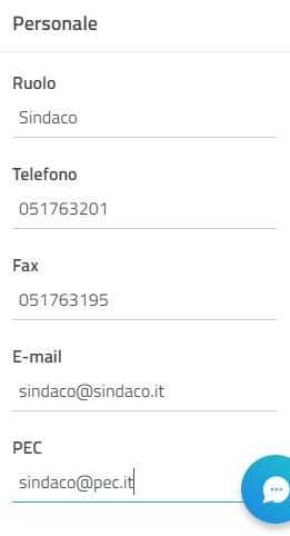Nella parte destra della pagina d'inserimento del "Personale" si possono inserire le seguenti informazioni