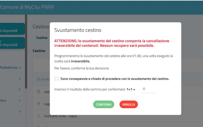 - spuntare la casella "Sono consapevole e chiedo di procedere con lo svuotamento del Cestino" ;