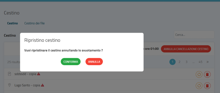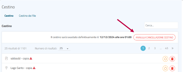 In caso contrario, alle ore 01.00 del giorno successivo, tutti gli elementi presenti nel Cestino verranno eliminati per sempre e non sarà più possibile recuperarli.