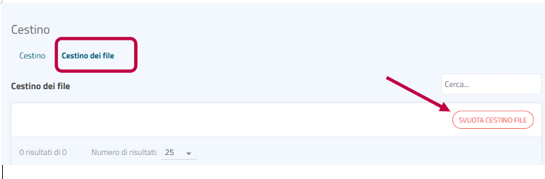 Da qualche giorno, all'interno del backoffice, abbiamo a disposizione un nuovo pulsante che ci permette di svuotare definitivamente il Cestino.