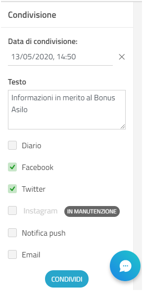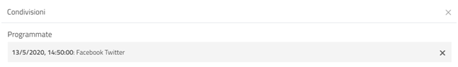 Nella pagina principale del "Pannello di Gestione" sarà possibile poter consultare tutte le "Condivisioni" programmate" e cliccandoci sopra vi riporterà alla notizia, contenuto od evento su cui è stata prevista la "Condivisione", tale informazione è presente nella parte sinistra