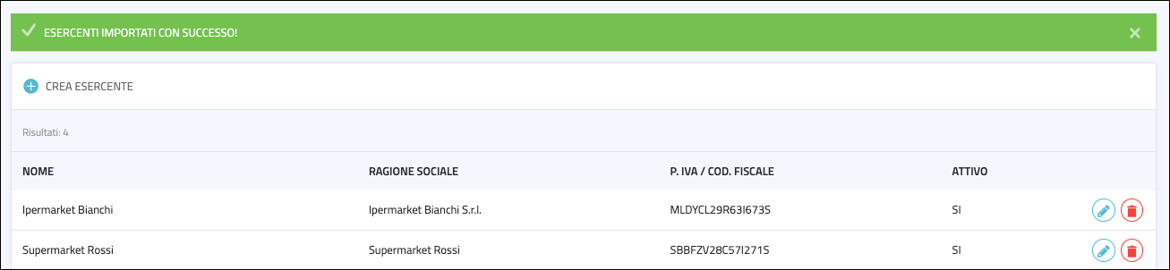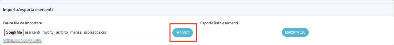 5. Un'altra modalità per caricare gli esercenti, che ti consigliamo di utilizzare nel caso fossero molto numerosi, è l'importazione tramite file .CSV (Excel).