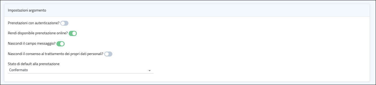 Un argomento è un servizio che rendi disponibile ai Cittadini per la prenotazione. Ad esempio, se stai configurando l'Agenda dell'Ufficio Anagrafe, potresti voler creare l'argomento "Carta d'identità elettronica", "Gestione della residenza" o ...