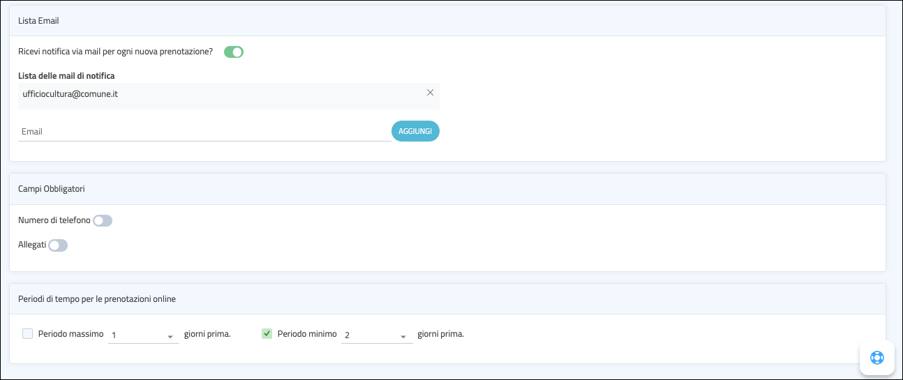 9. Stabilisci il periodo di tempo in cui è possibile prenotare. In questo caso, il Cittadino potrà prenotare fino a 2 giorni prima.
