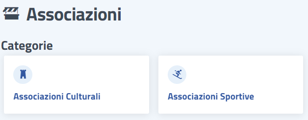Vuoi dare visibilità alla Associazioni presenti nel territorio suddividendole per tipologia? Per prima cosa devi collegarti al CMS, dalla Bacheca clicchi sul modulo Associazioni (se tale modulo non è visibile devi chiederne accesso all'Amministratore del Sito/App che è stato identificato per il tuo ente), clicca su "ELENCO CATEGORIE" e selezioni "CREA NUOVA CATEGORIA".