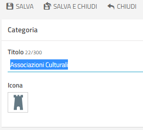 In "Titolo" inserisci il nome della categoria, ad esempio "Associazioni Culturali".