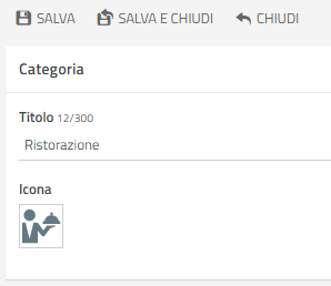 In "Titolo" inserisci il nome della categoria, ad esempio "Ristorazione".
