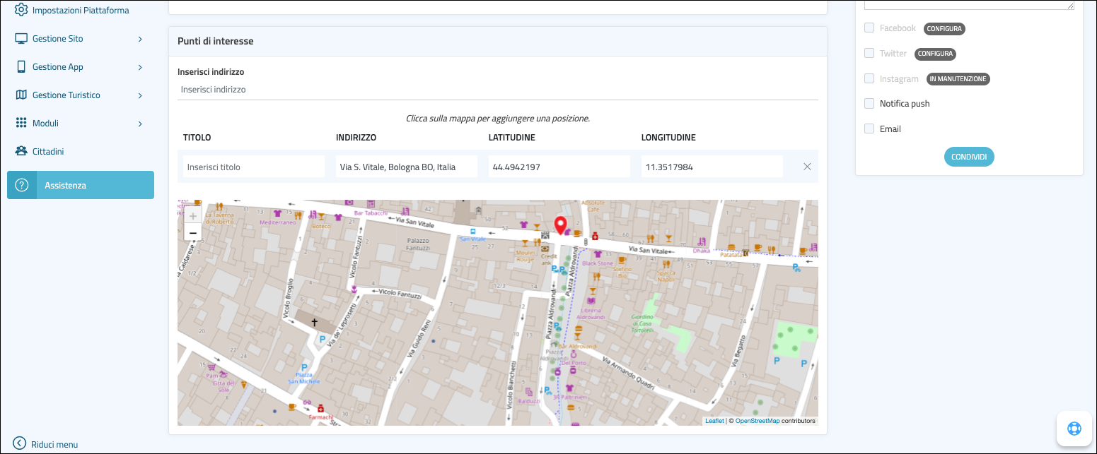 Vuoi dare visibilità alla Associazioni presenti nel territorio suddividendole per tipologia? Per prima cosa devi collegarti al CMS, dalla Bacheca clicchi sul modulo Associazioni (se tale modulo non è visibile devi chiederne accesso all'Amministratore ...