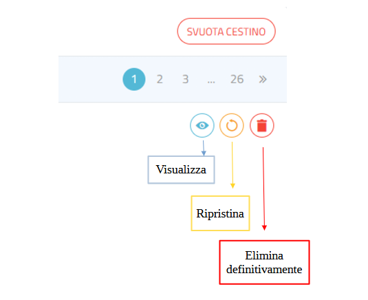 In corrispondenza di ciascun elemento eliminato vi sono tre icone colorate che ci permettono, rispettivamente, di: