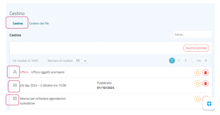 Hai eliminato un contenuto (un file, una notizia, un evento ecc...) e vorresti recuperarlo?