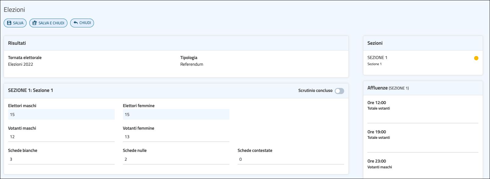 3. Per ogni sezione, dovrai inserire il numero di votanti (maschi e femmine), di schede bianche, nulle e contestate.
