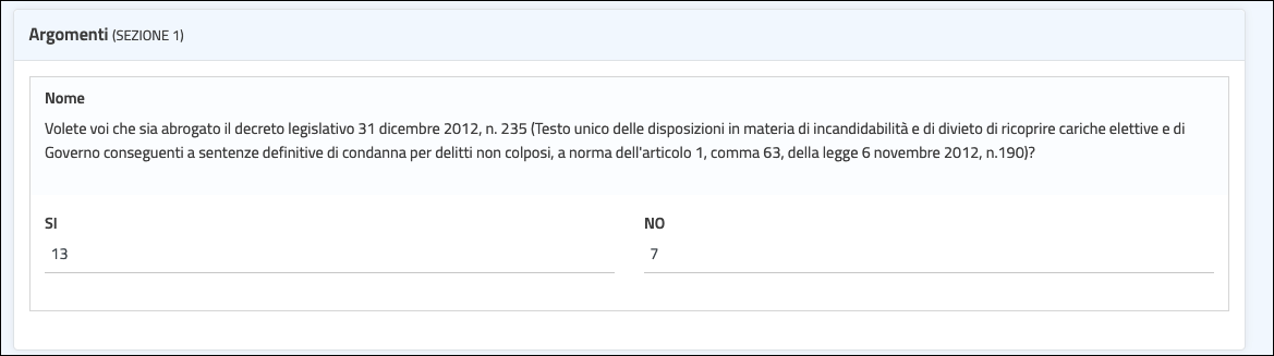 4. Clicca sul quesito del referendum per inserire il numero di SI e di NO.