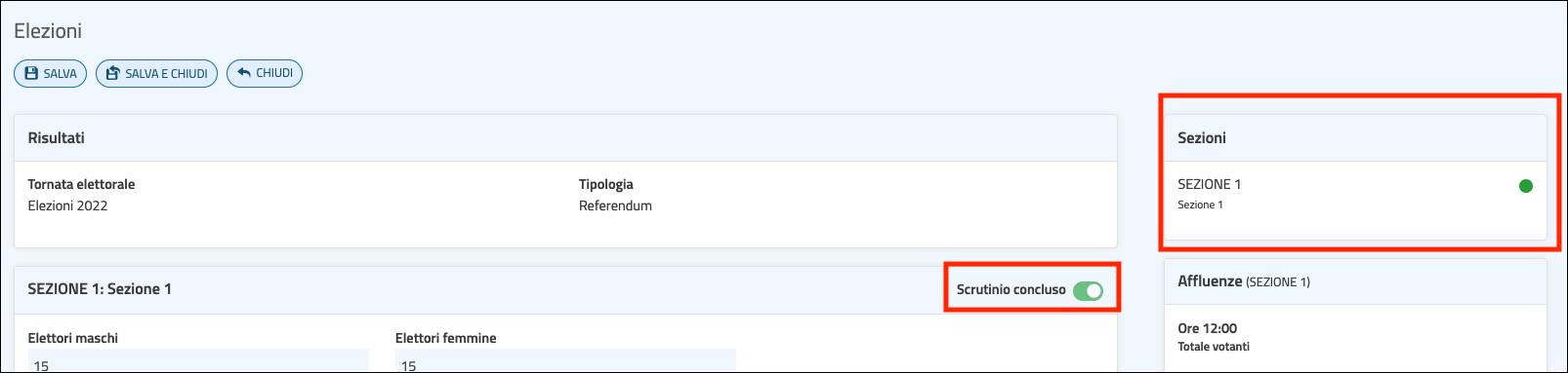 5. Quando lo scrutinio è terminato, segnalalo tramite l'apposito pulsante. Se non ci sono incongruenze nei dati che hai inserito, dopo che avrai effettuato il salvataggio, il bollino accanto al nome della sezione diventerà verde.