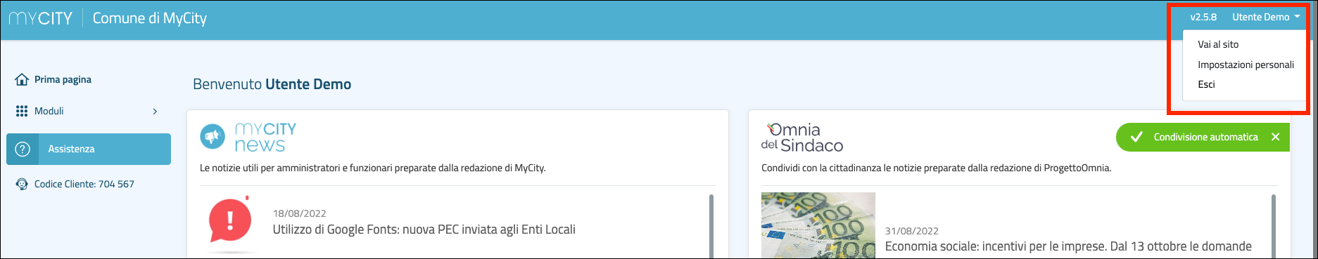 Potresti avere la necessità di modificare le tue credenziali MyCity; ad esempio è sempre consigliato cambiare la propria password dopo il primo accesso al Pannello di controllo.