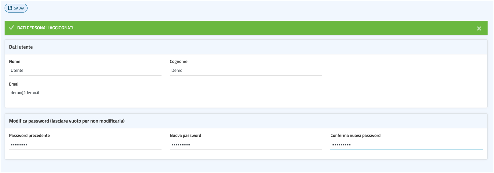 3. Clicca su salva: hai aggiornato le tue credenziali!