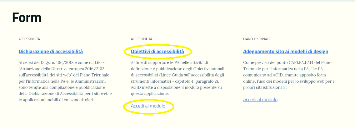 Di seguito troverai i passaggi per compilare gli obiettivi annuali di accessibilità, e le
