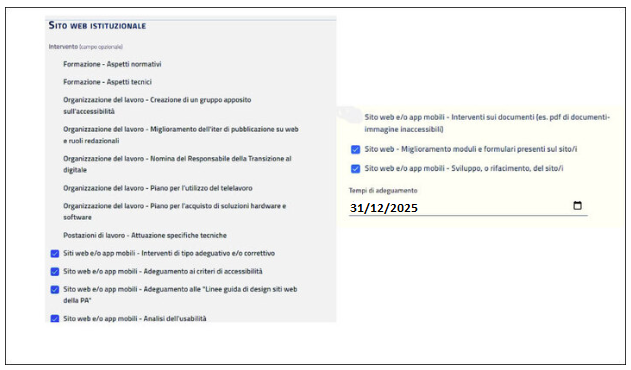 3. La prima sezione riguarda il Sito web istituzionale: seleziona gli obiettivi che hai già
