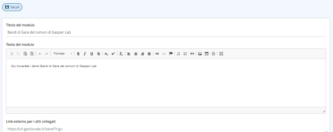 In "Testo del modulo" vai ad inserire la descrizione che vuoi che compaia come Testo del Modulo.